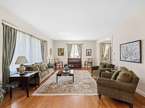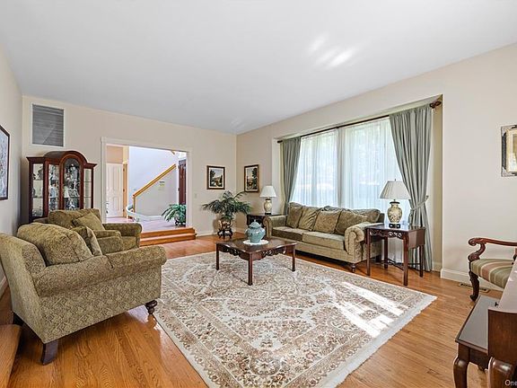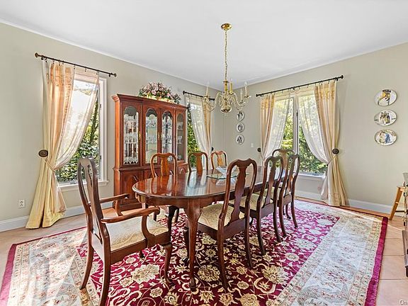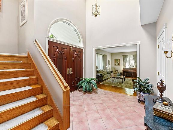 Meticulously cared for Colonial with well thought out spaces with plenty of natural light, large rooms, high ceilings and situated at the end of a cul-de-sac in a desirable neighborhood! On the main floor you can find the formal living room, dining room, the large kitchen with skylights and island with seating that opens to adjoining family room with wood burning stove. Views from family room windows out to the yard gives the feeling of living in a treehouse. On the second level is the master suite plus three family bedrooms and large full hall bathroom and a huge laundry room. Large master features vaulted ceiling, sitting area, his/her walk-in closets and ensuite with sauna, double sinks and jacuzzi tub. A full finished basement with entertainment area with wet bar, home office/guest bedroom and a full bath offer an amazing hangout area. Private with 2 lovely decks and parklike property complete with sitting areas and a bridge. Close to schools and easily commutable to NYC and surrounding towns.