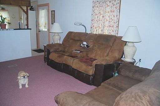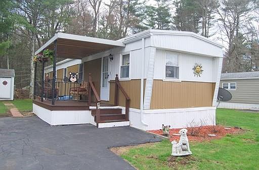 Brookside Mobile Home Park a 55+ community. Updated 2 bedroom, open floor plan, dine in kitchen, master bedroom fits queen size bed. Washer/dryer in bath. Newer furnace, windows, oil tank, rubber roof. Small pet OK. Low lot fee. Bonus of 2 sheds.