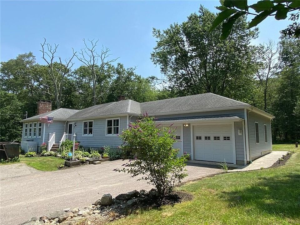 Lovely one level home located on 5.5 acres . The large open kitchen and dining room area are the heart of this house. Cathedral ceilings, sky lights and a center island make this a great place to spend time. Located off the dining area is a living room w/ a white brick wood burning fire place . The shared bath contains the washer dryer . A master suite w/ a stylish ,updated bath , new flooring and multiple closets is located at the end of the hallway . Two nice sized guest bedrooms complete the main floor living. The lower level has a finished office or bonus room . The remainder of the basement is dry and a perfect storage space. There is a walk-up attic off of the kitchen for even more storage . Off of the kitchen is an 20x18 fully covered porch that overlooks the back yard. Nestled in the back side of the property is a beautiful butterfly garden that has been lovingly maintained. The home has a propane fueled generator just in case. A back yard shed for any extra lawn equipment that wont fit in the garage. Centrally located and minutes to 95 exits .HIGHEST BEST OFFERS IN BY 5PM 7/10/21