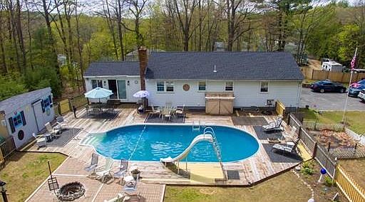 Looking for an extra large single family in a desirable location or do you need an in-law set up for family members? This spacious split level sits on 1+ acres of secluded private land. Inside and outside there is plenty of room for everyone to enjoy. Open & bright family room with large windows and vaulted ceiling. Sliders lead to your own private oasis, a large patio, a 18' x 36' in ground pool and a great fire pit. Fenced yard for pets and plenty of room for gardens and outdoor activities. Finished family room in basement with a cozy wood burning stove is currently used as a 4th bedroom but could be for in-law or multi-generation living. Newer roof, bedrooms all with ceiling fans and wall to wall carpet. Great commuter location with easy access to Routes 2, 140, Boston, Worcester and Southern NH. Away from the hustle and bustle of town with public water and sewer. No showings till Open House, Saturday, August 22, noon - 2 p.m. Any/all offers to be reviewed Monday 6 p.m.