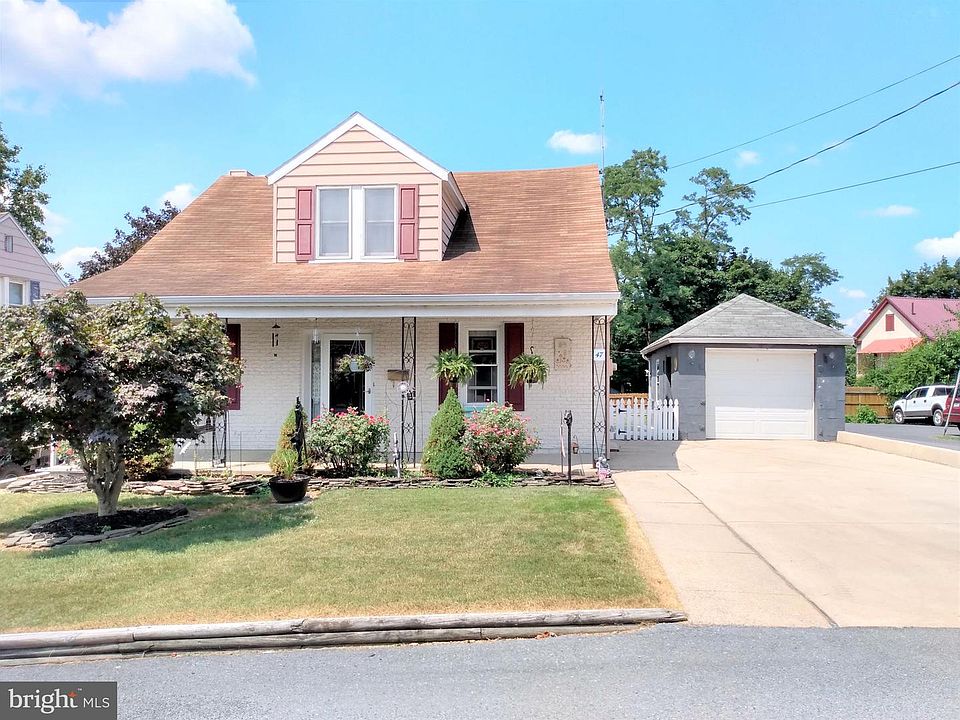 INEXPENSIVE PROPERTY TAXES & UTILITIES! This 3 bedroom 2 full bath Cape Cod features: updated kitchen; hardwood floors through out; archways; separate dining room; sun room with sliding windows; nice sized upper level bedrooms; fabulous front porch; large deck; patio; detached garage; storage shed; brand new water heater; newer natural gas furnace with central A/C; and more. Situated atop a hill in a convenient location and setting on a nicely landscaped lot with a great fenced-in back yard.