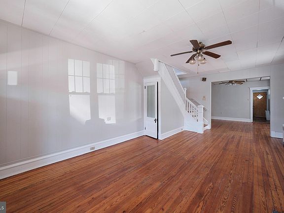 Freshly Painted 3 bedroom one and a half bath home, Gas heat and hot water. Eat in Kitchen, Open dining room, and living room with wood floors. Fireplace in Living room, Second floor you have 3 nice size bedrooms and a bath. The one bedroom has access to an outside balcony. This home also has replacement windows, and ceiling fans in most rooms. This is a nice place to call home. Potential off-street parking as well.