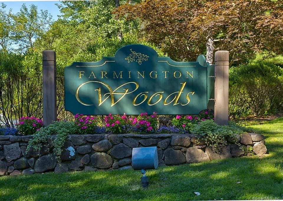 No need to rent any longer - this well maintained Ranch style end unit is ready for you to move right in! Don't miss out on this comfortable one floor living condo situated close to the front gate. This home is 2 bedrooms, 2 full baths, a nice dining room and a sizable living room with a wood burning fireplace. The kitchen is complete with SS appliances and tile floor. Step outside the living room slider to a relaxing private patio overlooking a small pond and the 18-hole Championship USGA golf course. Just down the road is the full service restaurant and banquet hall. This home also includes a 1 car detached garage with great storage. Additional amenities within the complex include 4 pools, tennis and paddle courts, gardens, sidewalks and so much more. Enjoy all Farmington Woods has to offer as a gated community! Total Monthly Charges = $455.71 includes HOA ($372); Comcast internet and basic cable TV ($49.20) and restaurant fee ($35). Quarterly tax is $400