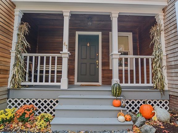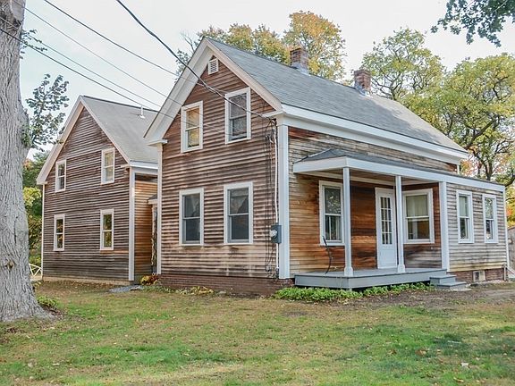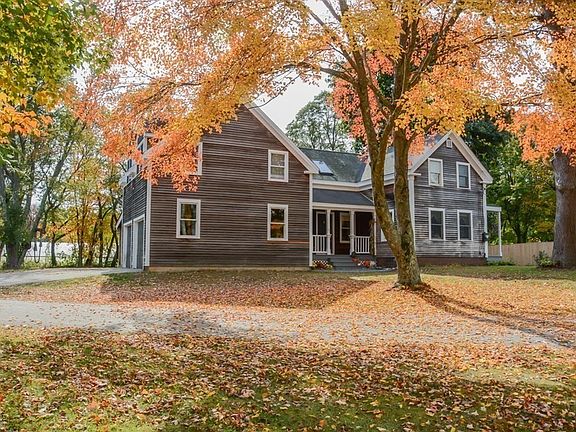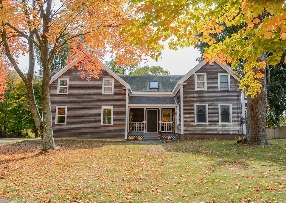 Come home to historic Rowley and easy living! Tucked on a tree-lined quiet street, this light filled expanded farmhouse features one acre of land with a level back yard and bonus outbuilding for office, playhouse or hobby space! Guests are greeted by a quaint front porch and enter into an updated kitchen that features an island, stainless steel appliances and granite countertops with plenty of work space. Kitchen opens up to both dining room and living room that provides lots of natural sunlight with new windows. Charming details including wide pine floors in living room, dining room and bedrooms. Bonus family room or in law suite with wet bar, bath, and private deck. Attached 2 car oversized garage and over extended car port. This home offers many updates - ready to make it your own! Close to major highways, MBTA and nearby Newburyport and Ipswich for restaurants and local shopping!