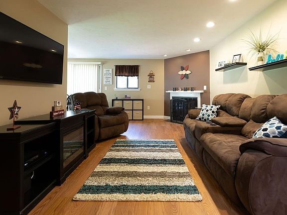 Beyond charming and well cared for 2 bedroom, 2 bath townhouse with 1 car garage and 2 off street parking spots with visitor spots. This Desirable End unit with beautiful lawn separates this unit from the others. Open concept living/dining room with slider to large deck over looking the lush backyard and lined by woods offering privacy. Brand New SS kitchen appliances in the cozy kitchen with gas cooking and pantry. 2nd floor has the 2nd bedroom, spacious with large closet and wall to wall carpet. Full bath with hookup for the washer & dryer. 3rd floor offers a large master suite with private 3/4 bath and huge custom double closet! Basement family room/ with newer floor and recessed lighting. Flooded with natural light and storage galore! New vinyl/wood flooring on 1st level, landings and stairs, Furnace, Hot water heater, AC & garage door all 1 year old! Mass Save blown in Insulation. Close to shopping, entertainment, restaurants, and easy access to major routes