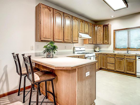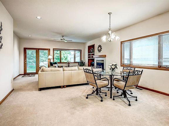 Don't miss this perfect home backing to a sunny greenbelt w/abundant trees. Enter the open floor plan which combines the large kitchen w/oak cabinets, pantry, sliding storage shelves & all appliances. Large eating area is adjacent to the open great room w/gas log fireplace. Newer beige carpet in most of the home. Large master on greenbelt side has generous walk in closet & 3/4 bath with seat in the shower. Guest bedroom is also generous and adjacent to full bath w/skylight right outside the door. Big laundry room w/utility sink, cabinets, washer & dryer & folding table. Garage is oversized and faces west for easy snow melt. Front of house is across from 9 community parking spaces. Roof new in 2014, Water heater in 2009, furnace in garage new in 2011. Don't miss the large covered patio on the east side of the home overlooking the greenbelt. Perfect for warm summer evenings, barbequing & reading your favorite book. Check out the mtn view & watch the sunsets from a special seat.