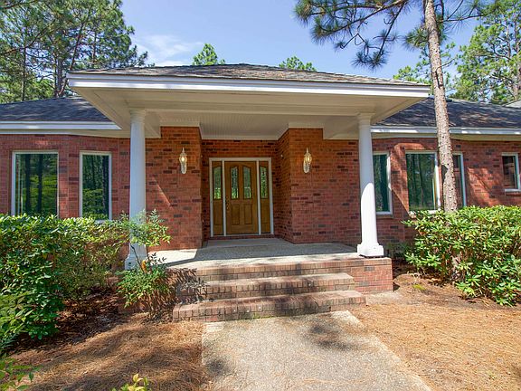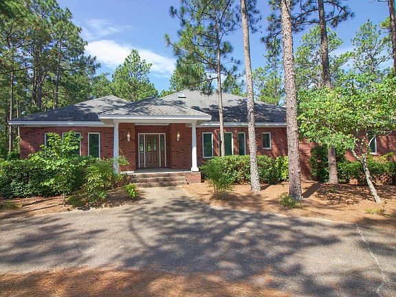 Long circular driveway approaches this all brick, Custom home on the 18th Hole of the Magnolia Course at Pinewild CC. Large kitchen with island and abundance of cabinetry. Kitchen opens to family rm with 13 ft ceiling and walls of windows overlooking golf course. Seller did extensive search for perfect golf front lot. Main living areas all face the Golf Course. E-Z breeze Carolina Rm also doubles as screened porch flanked by patios on each side. Master has ''bay windows'' and is freshly painted. Spacious 2nd and 3rd bedrooms! Hardwood floors throughout main areas of home plus beautiful wood trim. Generous laundry rm off kitchen has full bath. Pinehurst Country Club Membership available for transfer with buyer to pay fees. Pinewild is a gated community with large lots and all Custom Homes.