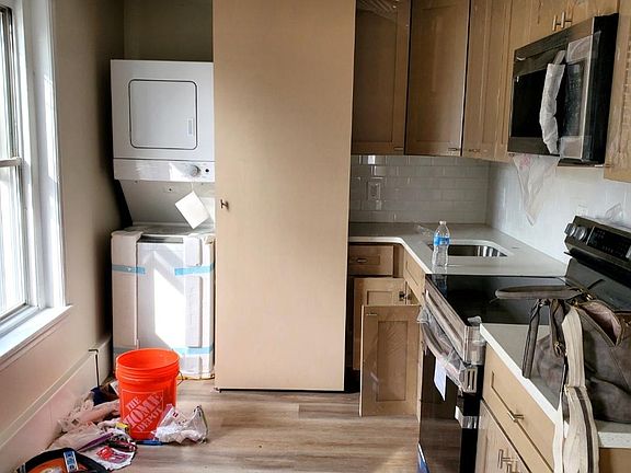 Freshly renovated one bedroom upstairs apartment with washer, dryer, storage, AC & private parking! This is the second floor of a twin home. Side yard available for your use. Lawn care is included. Private entrance through your own front porch. 1st Coat closet in that hall. Upstairs is an open concept plan with vinyl plank flooring. Kitchen is all new, featuring; room for cafe table, new cabinets, quartz counters, stainless appliances, white subway tile, and stacked washer dryer behind a barn door. Spacious living area with 2nd coat closet. Full bathroom in white & wood with mod vanity & soaking tub/shower and linen closet. Bedroom is spacious with another wide closet. Everything has been refreshed or replaced! Gas & water billed through landlord. Natural gas Forced air heating, central air conditioning. Available Feb 15. No Zillow apps. Apps are only given AFTER seeing the apt. Call/text to schedule. $55 app fee per adult. Gas & water billed through landlord, due in addition to rent. $1400 security deposit due with lease signing. First month, last month & security due before move in. No smoking in the building. 12 month lease. Private parking is out back. Plus lots of on-street parking. Must have a NO eviction history. No recent criminal history. Must have good Landlord reference and 3 year timely-payment history. Income must be 3x rent per year or $45,000/yr.
