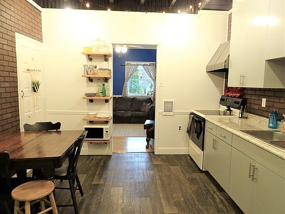 Warmth & style resonates from room to room in this beautifully-kept Newmanstown duplex. A charming front porch greets you and leads you into the modern living room accented with deep window sills, wainscoting & crown molding. The eat-in kitchen is just darling with a rustic beamed ceiling, custom open shelving, a range & refrigerator. 1 bedroom with ceiling fan & double-closet plus a bonus nook for an office/study space & 1 bathroom (shower only, No tub). Convenient 1st floor laundry room with a washer & dryer included. Basement & attic for extra storage, off-street parking & shared back yard space. 1 PET ALLOWED WITH FEES & RESTRICTIONS (Must be Under 25 Pounds at Maturity) Want to take a look at this home? 1-year contract, renews month to month after first year.