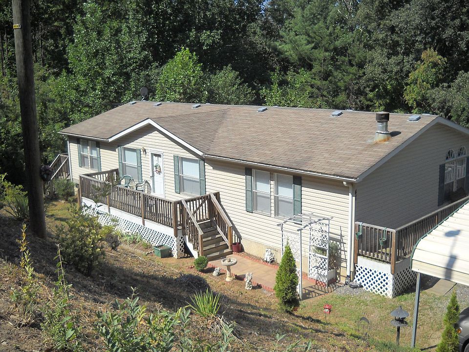 -Immaculate doublewide home on permanent foundation. Very private setting on nearly 3/4 acre wooded lot. Enjoy the changing seasons from the enormous wrap around deck. The interior boasts a spacious open floor plan with both a den and living room complete with beautiful fireplace. Built in bookshelves, a walk in closet and a garden tub with separate shower make this a place to call your home! Within minutes to shopping and resturants too!