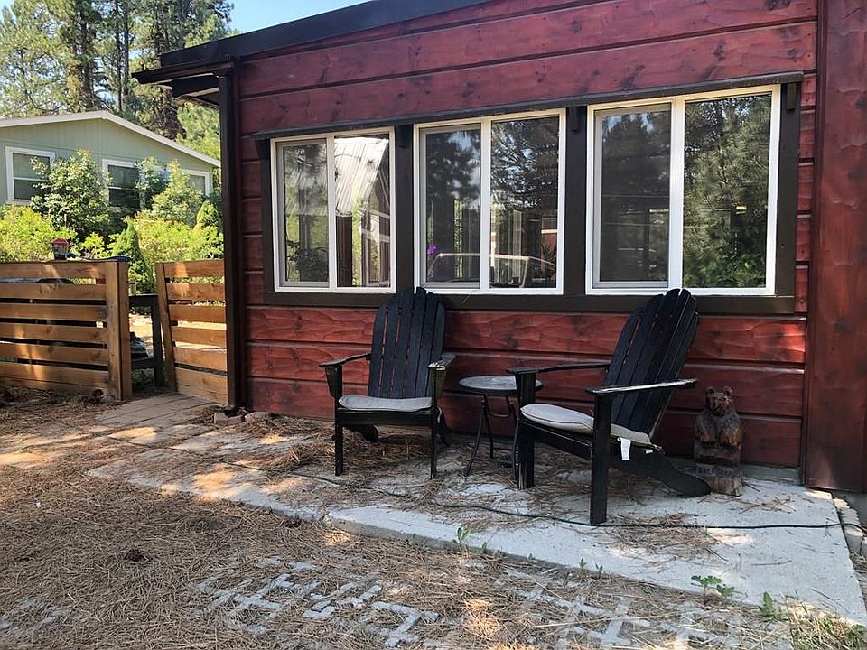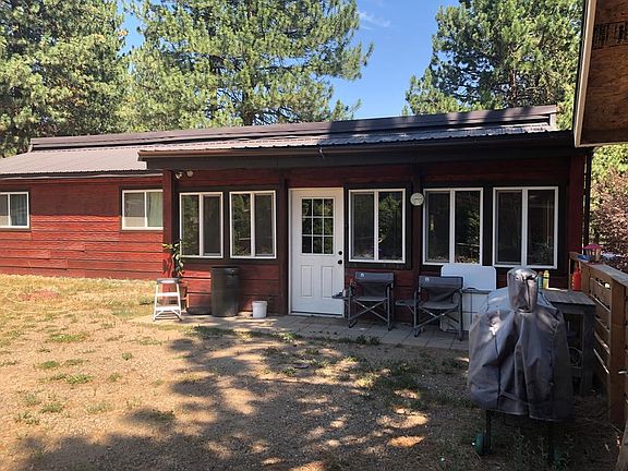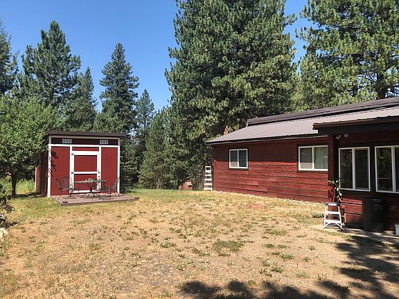 The "little red house" sits on a large lot with mature trees just south of Cascade. This 3 bedroom, 2 bath home features a large master suite with sitting area, walk in closet, and large tile shower. The remodeled kitchen is large enough for entertaining with an island sink, beautiful granite countertops, and plenty of storage space. The sun room is light and open with nice 18x18 tile floors. The laundry room has a stackable washer/ dryer set up with a large utility sink. Enjoy evenings around the built in fire pit in the back yard. There are 3 very nice utility sheds on the property. The front shed is 18x23 and fits one car in each side of it. The other two sheds are 10x16 & 10x18. MFG Home has been converted to real property.