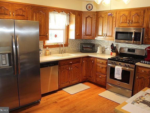 Brick front Ranch home on 3/4 acre backing to Bear Swamp at Red Lion Preserve. ( link to preserve in agent remarks ) Attractive front landscaping. . Beautiful stone flower bed walls, solar lighting and brick entrance walkway. Huge carport measures 36x24 . Extra wide tpaved driveway parking for more than 6 cars. 2 car detached garage with workshop and storage. Deck measures 23x10 with Hot Tub and 2 separate stairways to fenced in yard. Above ground pool with deck. The home features 3 beds,1.5 baths, central air, large front living room with bay window, formal dining room and nice sized eat-in kitchen w/hardwood flooring & custom oak trim and cabinetry. A pantry, , laundry room combo off of kitchen. Familyroom with gas stone fireplace . 4 ft. high crawl space provide loads of storage. The roof and well installed 2009. New septic 2016.