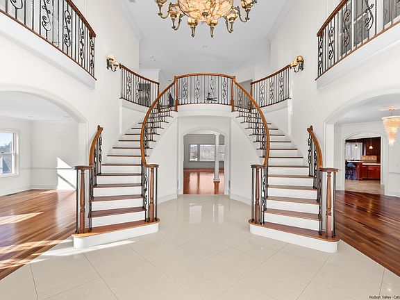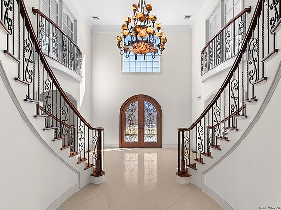 47 Eastview Lane is grand and expansive, yet comfortable and intimate at the same time. Nestled on over 6 private acres in the picturesque landscape of Red Hook, NY, this is a rare opportunity to purchase a beautifully sited estate in the Hudson Valley. This magnificent property offers unparalleled views of the majestic Catskill Mountains, providing a serene backdrop for luxurious living. Featuring 4 bedrooms, 5 full and 2 half baths, and an exceptional amount of living areas across 3 floors, this home offers space for gracious living and entertaining. As you enter the front doors, you are greeted by a grand foyer with double staircases that set the tone for the elegance and sophistication to be found throughout the house. The spacious living areas are adorned with high ceilings, large windows, and exquisite finishes, creating a sense of luxury and tranquility. The heart of the home is the chef’s kitchen, equipped with top-of-the-line appliances, custom cabinetry, and a large center island. Whether you are hosting for 2 or a lavish dinner party, this kitchen is sure to impress even the most discerning chef. This extraordinary residence also includes generously proportioned bedrooms with en-suite baths, 3 interior gas fireplaces, a home office or study well-suited for remote work or leisure, oversized windows throughout allowing for abundant natural light, an attached 3 car garage, and so much more! Outside, step into your own private oasis where an in-ground saltwater pool, hot tub, and outdoor entertaining area complete with a wood burning fireplace awaits. Surrounded by lush landscaping and breathtaking year-round mountain views, this exterior space is ideal for relaxation and recreation. Don’t miss your opportunity to own this exquisite estate set in the unsurpassed natural beauty the Hudson Valley offers.