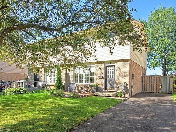 Introducing the perfect home for a young family, investor or first time buyer! Located in White Oaks, this home is close to transportation, White Oaks Mall, restaurants, schools and the Community Center. The main floor features a large living room, dining room, kitchen which is plumbed in for a dishwasher, and a two piece powder room. The upper level boasts 3 bedrooms with plenty of closet space and a 4 piece bathroom. The basement is finished with a gas fireplace and plenty of room for a gym, entertainment center or a play area for children. Updates include replacement flooring and windows throughout. The back yard has an above ground pool and gated access to the field directly behind the house which leads to Ashley Oaks and Sir Arthur Carty schools. Perfect locations for families with kids in these schools! A BBQ gas line is available for worry free BBQing. A large deck and above ground pool all on a large, private fenced yard make an excellent space for entertaining and outdoor play.There is also a large shed with hydro to accommodate extra storage! This home is in excellent condition, includes all appliances (fridge 2021) and is move in ready! Asphalt driveway redone 2022.