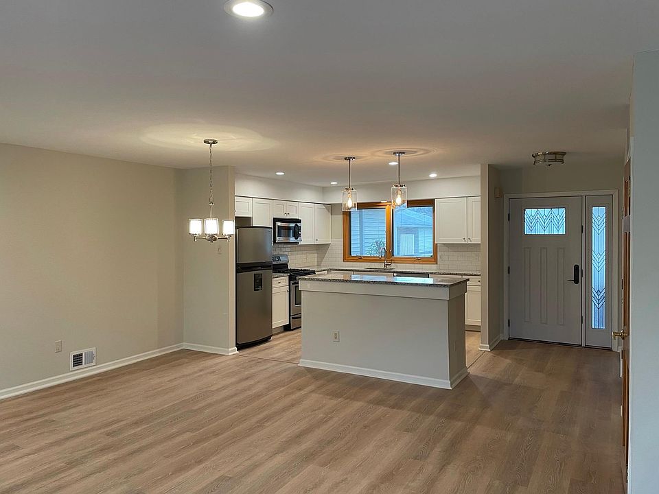 Freshly renovated 2 bedroom 2 bath townhome. New kitchen cabinets and granite counter tops. New laminate flooring and carpeting in bedrooms. 2 additional rooms in partially finished basement along with additional storage areas. Owner pays Sewer Water and HOA fees. Renter pays all other utilities. No Smoking. No pets. First and last month rent along with security deposit due at signing.