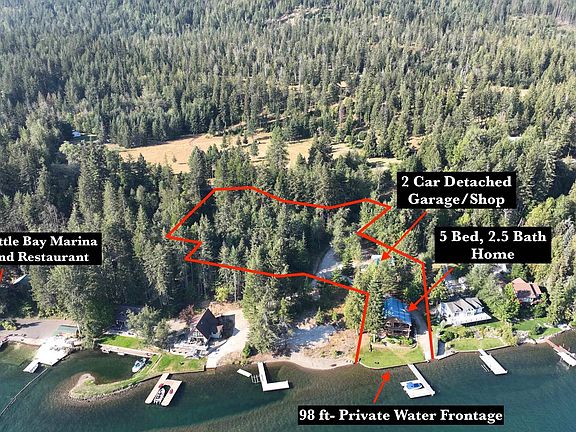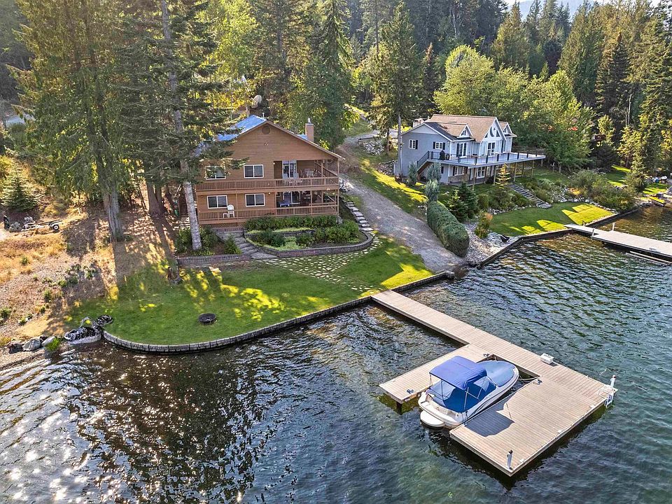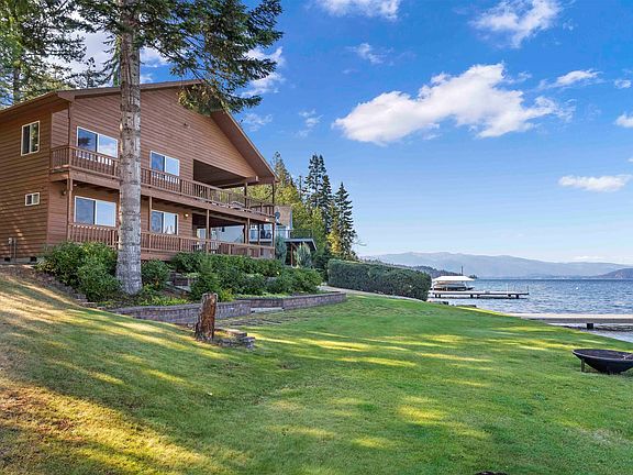 Welcome to this Lake Front Retreat, where you can experience the ultimate lake lifestyle. This spacious home boasts 2,992 sqft of living space, 5 bedrooms, & 2.5 bathrooms. Every inch of the property offers panoramic views of Lake Pend Oreille, making it the perfect place to relax & unwind. Inside, the open floor plan creates the perfect setting for hosting & entertaining. The family room features vaulted t&g ceilings, a kitchenette, & an abundance of natural light. The spacious kitchen offers ss appliances & a large eat-in island. Downstairs, you will find a cozy living room w/ amazing water views, a gas rock fireplace, natural wood accents, & sliders that lead to a covered deck, complete w/ plenty of room for outdoor dining. The main level includes 4 well-appointed bedrooms, including the master suite, which features sliders that allow access to the covered deck. To ensure your comfort during the warmer months, the house is equipped w/ air conditioning. Step outside to enjoy the meticulously maintained 98 ft of water frontage, complete w/ a fire pit & a private dock complete w/ a sea wall. Whether you're looking to relax by the water, go for a swim, or take a boat ride, this lakefront home has everything you need. Located just a short drive from downtown Sandpoint, restaurants, & all amenities, this property is the perfect place to escape. Come see the beauty for yourself; waterfront like this on Lake Pend Oreille is hard to come by!