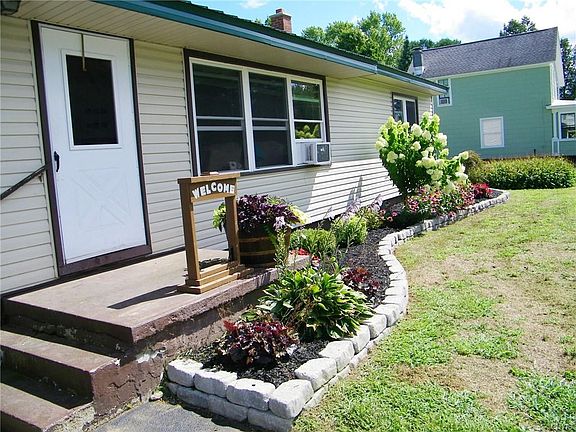 A "Rare Offering" in the Village of Camden! This Cute & Cozy Village Ranch is ideally located between the Camden Elementary School & Camden High Schools. Offers 3 generous size bedrooms with closets, full bath with tub/shower & large living room. Many of the rooms in this home have wonderful oak hardwood floors for easy maintenance. The country style kitchen offers painted wood cabinets, stainless steel appliances & the most adorable pub style island/breakfast bar that fits 4+ adults & makes a great area for preparing meals & additional cabinetry storage underneath. There's an entry breezeway with access to the full dry basement for more future living space with laundry hookups for a washer & dryer. You will love the oversize village lot that's nicely landscaped, beautiful spacious backyard with a 12' x 12' storage shed & a one car attached garage with paved double width driveway for plenty of off street parking. Don't Miss Out On This One & It's Affordably Priced Too!
