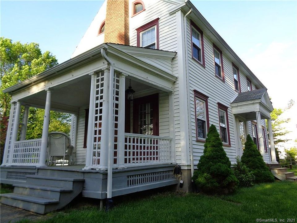 This gorgeous home features updated electrical and windows; gleaming hardwood floors throughout; spacious, updated kitchen with ample cabinet and counter space, island with utility sink and seating; three bedrooms; two full baths; laundry room; walk-up attic; formal dining room with built-in hutch and French doors; spacious living room with wood burning fireplace and French doors leading to the covered porch. Once part of the prestigious compound of a prominent South Windsor family, this stately colonial is situated high atop the Scantic and Connecticut Rivers. Comprised of horse farms, tree farms, pumpkin patches and, just around the corner from the oldest, continuously operating post office in the country, this picture-perfect neighborhood is located off Main Street. Conveniently located between Hartford and Springfield and in close proximity to shopping, restaurants, entertainment venues, major highway access, train depot and Bradley International Airport. See it today
