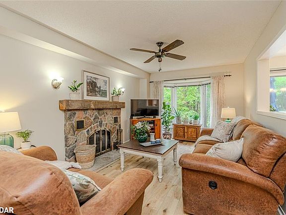 IMPECCABLY KEPT ALL-BRICK 2-STOREY SHOWCASING NEARLY 3,100 SQ FT & MATURE GREENERY BEHIND! 47 Finlay Road in Barrie’s sought-after West Bayfield neighbourhood is an all-brick 2-storey home offering nearly 3,100 finished square feet of thoughtfully designed living space. The fully fenced backyard backs onto greenspace beside West Bayfield Elementary, creating a rare sense of privacy with mature trees, lush gardens, and a deck ready for everything from morning coffee to weekend get-togethers. Upgraded hardwood and luxe engineered vinyl floors extend throughout the main level, where the kitchen impresses with stainless steel appliances, ample cabinetry, and a breakfast area featuring a pass-through window to the family room and a walkout to the yard. The family room is anchored by a wood-burning fireplace with a stone surround and rustic mantle, paired with a bright bay window, plus a nearby combined living and dining room. Upstairs, the expansive primary suite is a true retreat, featuring a sitting area, a walk-in closet, and a 5-piece ensuite complete with a corner Jacuzzi tub, dual vanity, and stand-up shower. The finished basement offers incredible versatility, presenting above-grade windows, a large rec room suitable for a pool table, a gas fireplace, a wet bar, and excellent potential for an in-law suite. Practical touches include a basement workshop, a well-maintained garage workspace with epoxy floors, and a main floor laundry room with inside entry from the garage, complete with a laundry sink. Whether it’s unwinding by the cozy fireplaces, hosting game nights in the basement, or relaxing on the deck surrounded by mature greenery, life here is all about comfort without compromise!