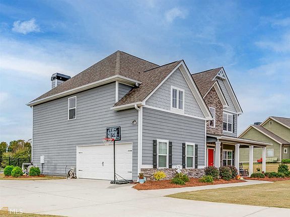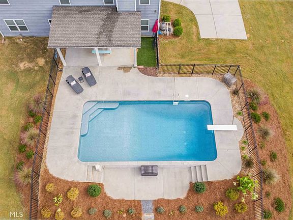 This home has it all! A functional floorplan and amazing outdoor space with direct lake access. This 4 bedroom 2 and a half bath home sits on a sprawling 1.3 acre lot in a family friendly community. Walk outside and you'll find a sparkling salt-water pool, spacious covered porch, and the serene lake for fun and relaxation. Inside the home, you'll find a 2 story foyer with hardwood flooring throughout the main level, bright flex room, great for office, playroom or den, which leads to the formal dining room with coffered ceiling and open kitchen with backsplash, tons of cabinetry, beautiful granite and stainless steel appliances plus a pantry. The family room is great for unwinding and entertaining, its open to the breakfast area that leads outdoors. Upstairs you'll find the enormous master bedroom, and huge bathroom with separate his/hers vanities, separate shower and garden tub as well as a walk-in closet. 3 additional bedrooms with spacious closets. Come see the beautiful home today!