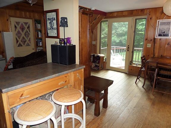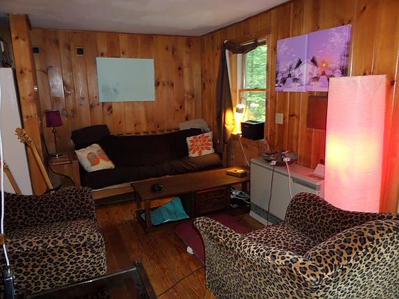 Unique and charming little contemporary home, This country cottage has a great private setting next to a year round stream, Open floor plan making every space feel larger as the rooms flow together. Kit, Din, Living, Bed and Bath with laundry on the first floor plus a small entry office space. The second floor has a wonderful studio/living area with cathedral ceiling and skylights plus a second bed room with the same. Nice deck, storage building with metal roof, garden shed down by the trout brook that seems to wander back and forth across the property line. Delightful location 12 miles to Northampton.