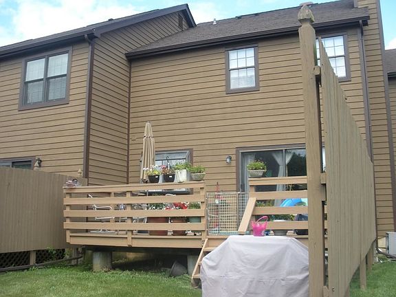 Large, bright end unit. Cul-de-sac location in desirable Manors subdivision. Enter this home to an open vestibule with a front room study or game room. Continue to an open dining room/ living room with fireplace. An eat in kitchen with good morning light and first floor powder room complete the first floor. Head upstairs to 3 bedrooms and 2 baths. The main suite has good closet space and own main bathroom. The secondary bedrooms offer plenty of space. Your 9 basement has exceptional storage capacity.