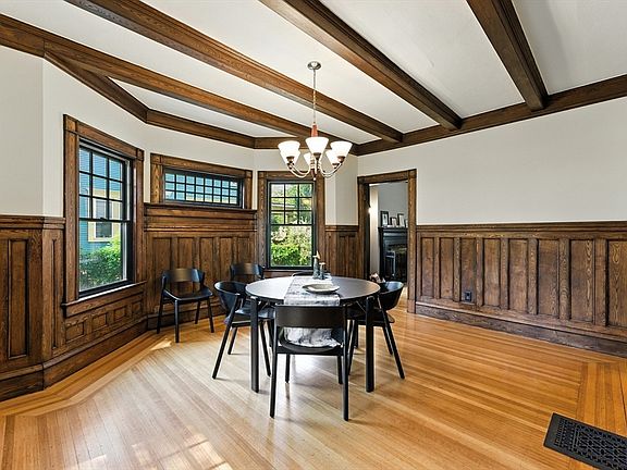 - Features: Beamed Ceilings, Closet/Cabinets - Custom Built, Flooring - Hardwood, Wainscoting, Crown Molding