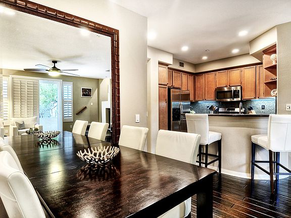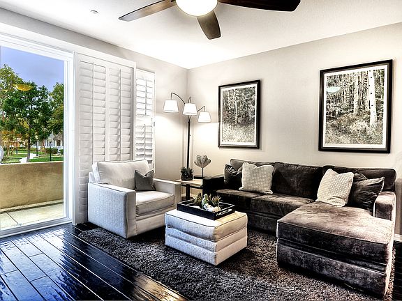 **ELEGANCE MEETS COMFORT!**Exquisitely appointed Berkshire end unit Townhome. This home boasts 1,505 square feet in living space with 3 Bed/2.5 Bath. As you enter the home you will enjoy the elegance that this home offers which include dark hardwood floors all thru-out, a spacious kitchen with granite counters and full backsplash, stainless steel appliances, and designer style wood cabinetry. No detail has been spared in this home from designer style wood shutters in all the windows to custom wall coverings in the bathrooms and master bedroom. The spacious master bedroom and bathroom have a contemporary ambiance as your own private oasis with his & hers vanities and an oversized shower with designer style fixtures and beautifully laid stonework through out. Custom paint and plush carpet are in all bedrooms with the continuation of the dark hardwood floors thru the hallway and laundry areas. The secondary bedrooms offer plenty of space with mirror closet doors each with private access to the shared rear balcony. The home is walking distance to Founders Park where our concerts in the park and Fourth of July celebration occur and close to all the community amenities that the Ladera "Lifestyle" has to offer. A perfect place to live happily ever after!