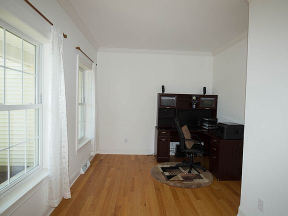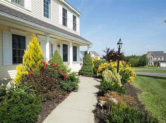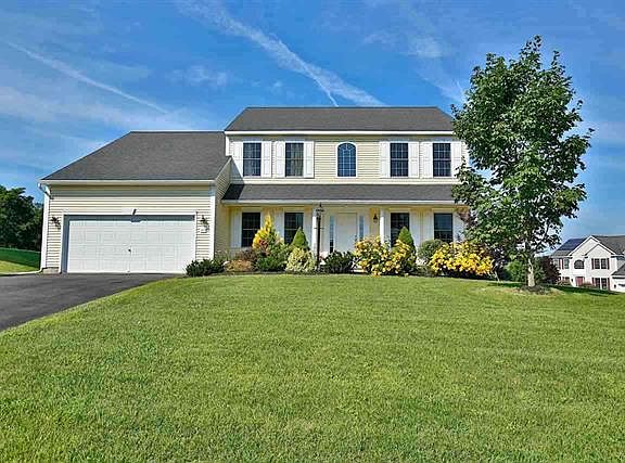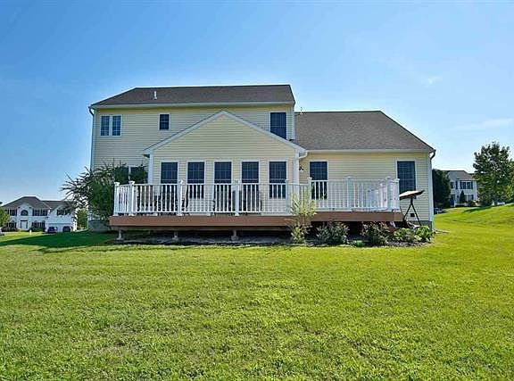 ike NEW Colonial in quiet neighborhood on 1/2 Acre corner lot. Office conveniently located next to front door. Dining room size would hold almost any formal set. Spacious gourmet kitchen w / GE Profile stainless steel appliances incl. convection oven and wine fridge, corian counters. Kitchen opens to family room and year round sun room which has French Door leading to maintenance free deck. Large Master bath and walk-in closet. Neutral decor throughout. First floor laundry. Large Open Yard has a slope