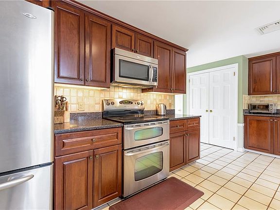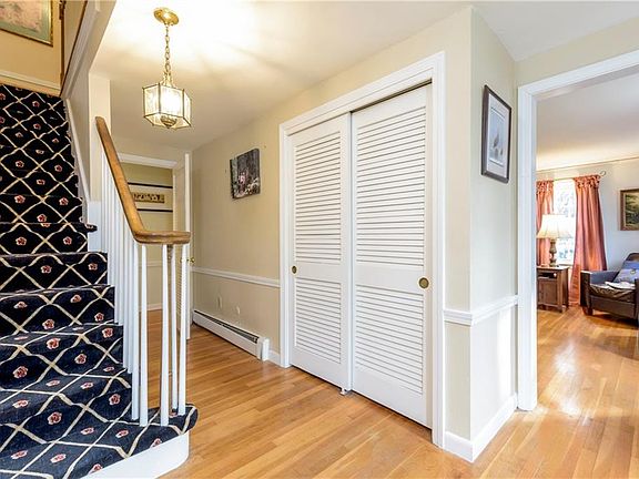 Gracious Moorehead colonial set on a beautifully landscaped lot in desirable CindyAnn Farms. Home boasts a spacious updated kitchen with stainless appliances, granite counter tops and lots of pantry storage. Family room off kitchen with fireplace has lots of windows, bringing nature in, opening to great patio and screened in porch. Front to back sun drenched living room with built-ins and a second fireplace. Formal dining room and lavette with laundry complete the first floor. Second level has a master suite with a renovated bath and three additional good sized bedrooms. Hardwoods throughout, replacement windows, three a/c systems. Newly refinished rec room in lower level with floating vinyl floor, drywall, new ceiling tiles. Deck off family room overlooking lovely private lot! New invisible fence, sewers and town water. Minutes to highway, town, shopping and all amenities East Greenwich has to offer.