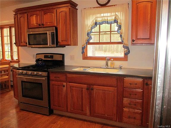 Looking for privacy and your own private piece of the country? Look no further! Nestled on 2.54 private acres this home features 4 bedrooms, 2.5 baths gleaming hardwood flrs throughout, ceramic tile in baths, eye catching stone fireplace, kitchen boasts cherry cabinets, Corian countertops, stainless appliances, spacious family room, formal dining room, enclosed breezeway, rocking chair front porch to enjoy your morning coffee or evening cocktail, nice size deck off kitchen, great for entertaining, beautiful stone walls surrounding the property, fenced in garden for those home grown vegetables. This folks is country living at it's best! Port Jervis School District Mailing address 47 River Ridge Rd, Cuddebackville, NY 12729 School bus stops at end of road!