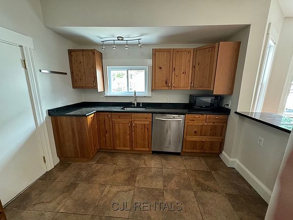 Freshly painted, clean 6 room, 2 bedroom plus den! Enjoy 1st floor living in 2 family home in Waltham Highlands! Convenient location close to all major routes, Mass Pike and Universities Brandeis and Bentley. Hardwood floors throughout. Modern, updated kitchen opens to large dining room and living room. 2 good-sized bedrooms plus office! Lots of closet space. Enjoy dedicated driveway parking for 2 cars! 1 car, detached garage available (additional.)Rear yard use. Laundry in basement. Stainless steel appliances and granite countertops. Pet considered. Available immediately or September/October 1st.