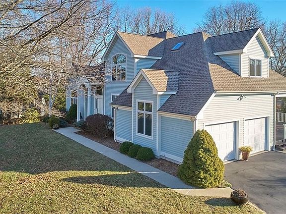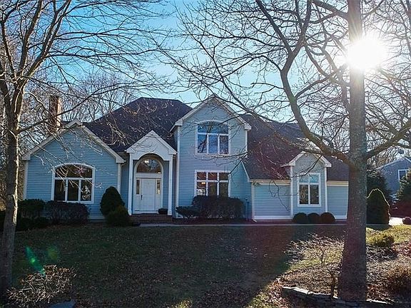 Located in a waterfront community known as Mumford Cove which boasts a long beautiful stretch of south and west facing beach for Mumford Cove residents only, with awesome sunsets, deep water docking, a lagoon with docks for residents, tennis courts, and a picnic and playground area and social events. This well built , nicely appointed house is situated on a lovely three quarter acre lot . There is a wonderful walking path at the end of the street that takes you all the way to Bluff Point. The house features hardwood floors , high ceilings, and generous rooms. The well equipped kitchen adjoins the family room all on the sunny south side of the house and has a fireplace and entry to the spacious deck....great entertaining space. Separate dining room and living room with fireplace. Two of the the bedrooms have ensuite baths The lower level has sliders to walk out to the yard and is ready to be finished. Two car attached garage