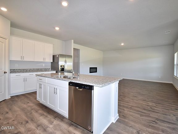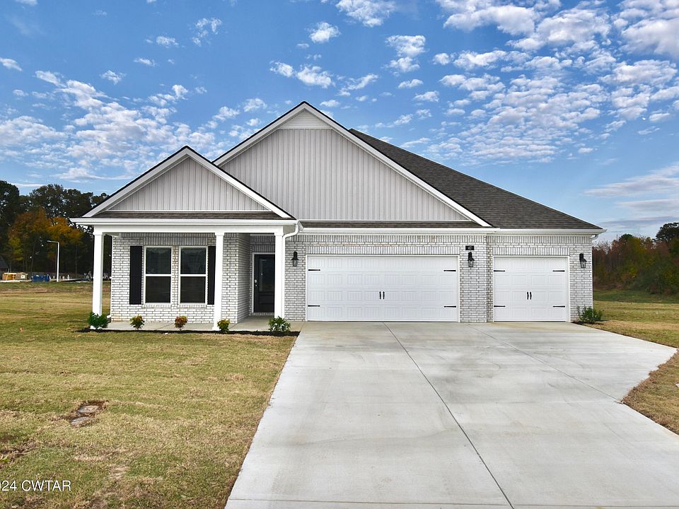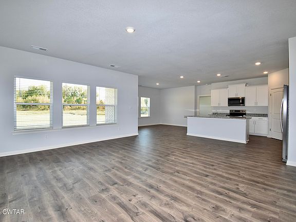 THE DENHAM: 4BD/3BA PLUS 3 CAR GARAGE! Granite countertops, Revwood flooring in living room & halls. Open floorplan with electric fireplace in living room, separate dining room, & blinds included throughout! Pantry & Island in Kitchen with stainless steel appliances PLUS Refrigerator! 4 bedrooms down, 1 up with full bathroom! Separate laundry room, covered front & back porches! All homes will feature our Home Is Connected, Smart Home Technology Package. Seller is offering SPECIAL INTEREST RATES...Call for details! Pictures, colors, features, and sizes are for illustration purposes only and will vary from the home as built.