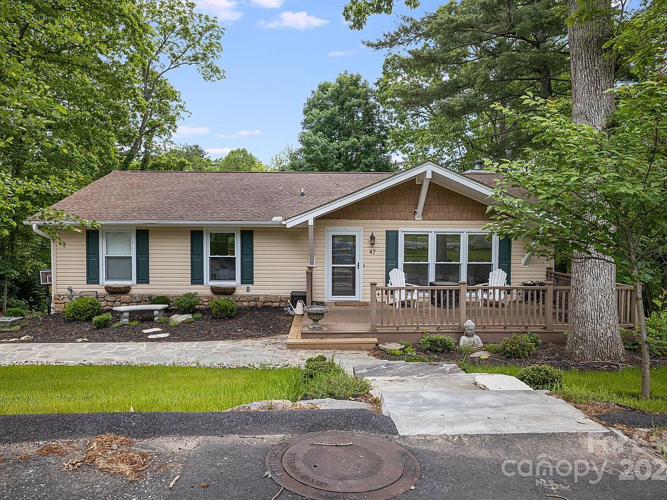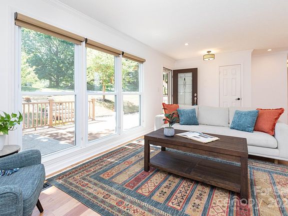 Welcome to this inviting 4-bedroom, 3-bathroom residence in the Beverly Hills neighborhood, a 10 minute drive from Downtown Asheville. A spacious kitchen features a breakfast bar and overlooks the main dining space, perfect for entertaining guests. The main-floor primary suite includes a walk-in closet and ensuite bath with a clawfoot tub and standing shower. The fully finished basement has an additional bedroom and full bath, accessible from inside or through a private entrance. The spacious upper and lower decks offer peaceful views of the partially fenced back yard and tree-topped hills of the neighborhood. Recent upgrades by the current owner include whole house water filter, grading and landscaping, built-ins, flooring, soundproofing, and updated fixtures. A full list of improvements is available upon request.  The community features several small commons areas along with the Asheville Municipal golf course which has recently undergone major renovations.