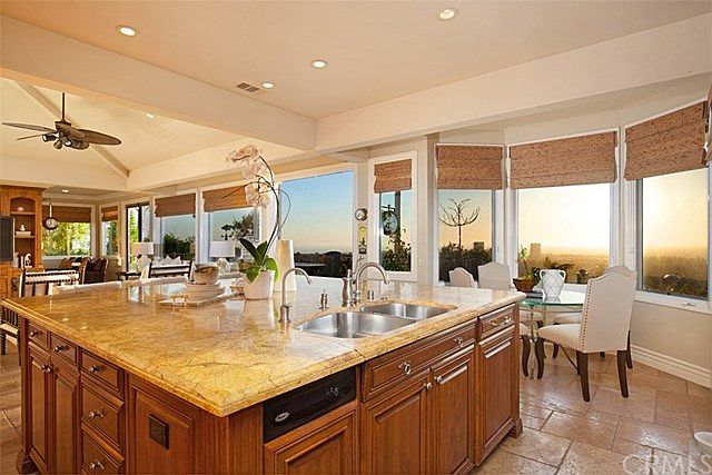 Newly Renovated & Staged Sought After Single Level Residence offers 3 bedrooms, a study/office, 2.5 baths and spectacular sweeping ocean, Catalina island, city & snowcap mountain views. Gated courtyard with fireplace, fountain & olive trees leads to a voluminous sky lit foyer through double french doors & copper canopy, which greatly enhances the spaciousness of the living & dining room. Living Room features Travertine floor, built-ins, limestone fireplace and is adjacent to the dining room with skylight & mirrored wall. Chef's Kitchen is open to the family room and boasts a large marble top island, breakfast nook, top-of-the-line appliances including Bosch dishwasher, Viking 6 gas burners range, built-in refrigerator, instant hot water & filtered water. The family room features built-in entertainment center, surround sound system, ceiling fan & limestone fireplace with mantle, leads to the study/office area overlooking the deck with expansive views & fruit trees. The open floor plan offers a great flow for entertaining large or small groups of guests or warm and cozy for a family of two. Master bedroom with ceiling fan looks out the courtyard with a fireplace & a fountain through two tall French doors. Master bath features limestone countertop, glass enclosed shower, whirlpool tub, dual sink, vanity, ceiling fan, skylight & a large walk-in closet. Harbor Ridge is within close proximity to the beach & offers 4 pools, 3 tennis courts, 24hr gate guard & a patrol.