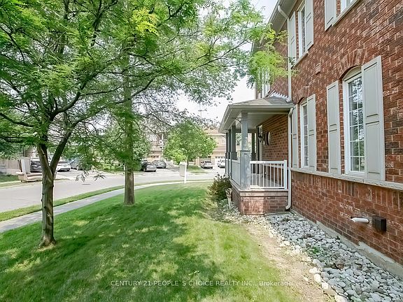 This Corner Detached home boasts 3+1 Bedrooms and 4 Washrooms, with 9-foot ceilings on the Main floor and a Coffered ceiling in the Master Bedroom. It features a finished basement, an Upgraded Kitchen, Hardwood Floors, and a Solid Oak Staircase. Enjoy the convenience of no Sidewalk, California shutters throughout, and a Carpet-Free Interior. Laundry On Main Level The home is equipped with Pot lights and a Deck in the Backyard. Located just minutes from Highway 410, Trinity Common Mall, and other Amenities. There's also potential for a Fourth Bedroom. Concrete Front Patio, Large Backyard With 2 Tiered Cedar Deck.