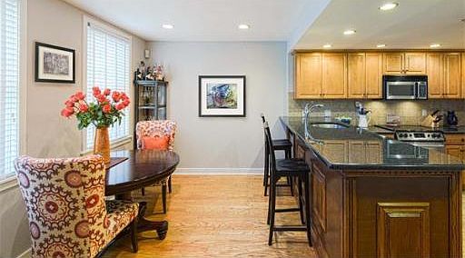 PREMIER LOCATION! 2 Level, Direct Entrance Townhome at The Courtyard offers all the privacy & space of a single family home. Kitchen boasts sleek black granite Sub-Zero refrigerator, wine fridge, cherry cabinetry, breakfast bar for entertaining and a separate area perfect for intimate dinner parties. Hardwood floors, a half bath, wood burning fireplace, living area and home office space. Walk upstairs to laundry, 2 large bedrooms boasting en-suite baths, walk in CA Closet. 1 Garage Parking.
