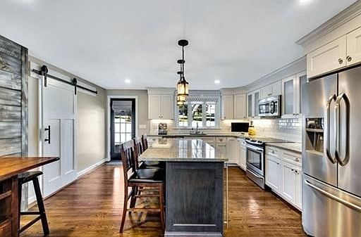 Move right in to this tastefully renovated, expanded Cape. Conveniently located in a tranquil Attleboro neighborhood, this spacious, light-filled home features a large granite and stainless kitchen complete with breakfast bar and wine cooler, and lovely decorative touches including dark hardwood floors, pendant lights, a barn board wall, and flush mounted, recessed lighting.There are two updated full baths and a living room with a fireplace and large picture window. The flexible floor plan includes a dining room / family room with a picture window overlooking the backyard. There are two bedrooms on the first floor (one currently being used as a playroom) and three on the second, featuring built-in storage and ceiling fans. A new heated mudroom with built-in storage leads to a fenced backyard with a patio. A large, dry basement and a walk in space over the garage can accommodate all your additional storage needs. Welcome home!