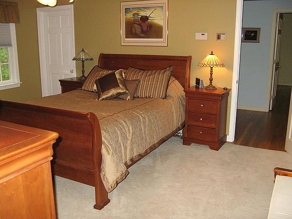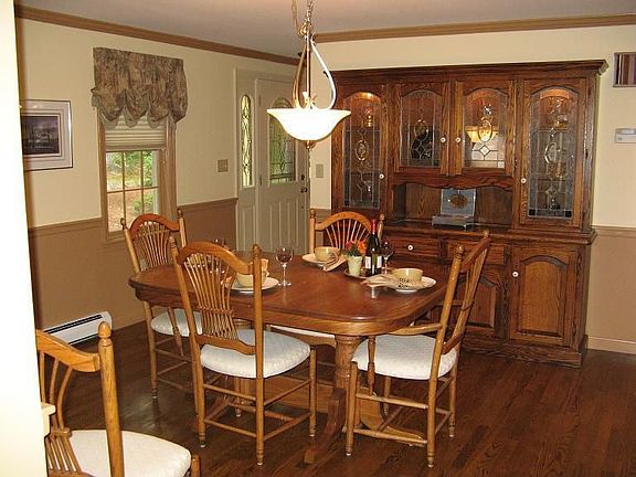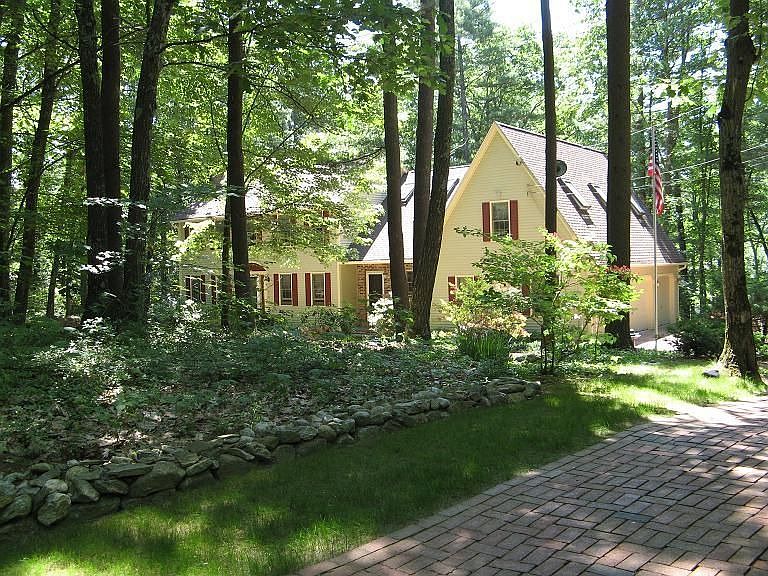 Mornings hectic? Not in this 2.5 bath, 3 bedroom Colonial. You'll find lots of space for everyone. Fully applianced kitchen merges to spacious dining room. Front to back Family room with a fireplace and hardwood floors for today's casual living. Master suite is enhanced with two unique walk in closets, hardwood floors and a private tiled bathroom with a jetted tub. Two additional bedrooms with plenty of place for sleep, storage and play plus a full bathroom with more storage complete the 2nd floor. Pull down stairway to attic for extra storage. You'll love the easy care of tile floors in all baths and solid hardwood floors through out the rest of the home. Enjoy cool summer mornings or evenings on the outdoor patio or gazebo in the privacy of your wooded yard. Shared storage for you in the basement and convenient washer dryer hook ups in 1st floor bath. Central air, storage shed, gazebo and Juliet balcony on 2nd floor make this a truly unique rental! Less than 3 miles to Rte 93! Rental does not include the breezeway, garage or room above garage.