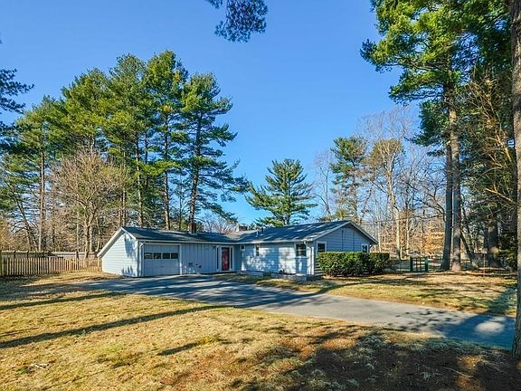 Enjoy expansive one floor living nearby lovely Dudley Pond. This four bedroom home has much to offer. Maple cabinets in kitchen open to fireplaced dining area and family room beyond with wood burning stove. Two bedrooms to one side of the house and two bedrooms and an office off the other side of the house. Two updated bathrooms. The yard is fenced in and there is a one car garage with laundry area. Peaceful neighborhood location nearby hiking trails and in close proximity to all the schools. Enjoy skating, fishing and paddling on nearby Dudley Pond. Great entry point into Wayland with top rated school system.