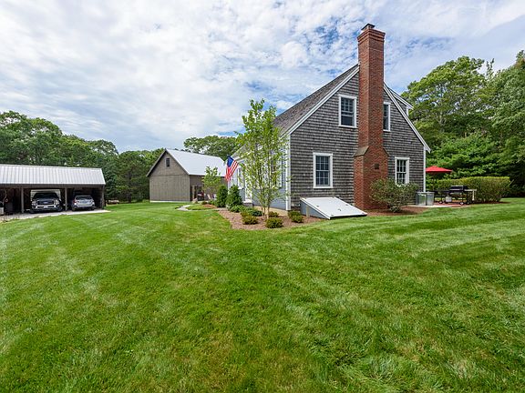 Meticulous craftsmanship, custom features and remarkable attention to detail by master carpenter owner/builder. Built in 1999, this 3 bedroom, two bath neat and pristine home decorated in Early American style with features like door transoms, hand-built exterior cedar shutters, pegged wood floors, custom-made beaded trim inside and outside, crown moldings, wainscoting, custom-built front entrance, reproduction cut nails and recently compacted and capped stately sea-shell driveway. Set well back from the road, surrounded by lawns and gardens, the main house is balanced visually by three outbuildings that comprise this remarkable compound that offers significant potential for a buyer looking for sizeable work and storage space. Allow lots of time for a showing because you'll need that time to absorb all the jaw-dropping details! There are three exterior structures:1) Magnificent 28 X 36 barn with 12' ceilings and a reinforced concrete floor with radiant heat, interior staircase to 16 X 36, 576 sf unfinished second floor, with possible conversion to living space. 2) 21 X 31, fully wired, car shed with space for three vehicles. 3) 10x12 garden shed