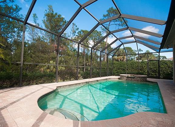 As you enter the home you will be drawn to the expanse and beauty of the natural preser ve. Falcon Ridge is an exclusive community of 35 homes with winding streets. The split floorplan opens to a private screened lanai with pavers, a beautiul pool and raised, cascading spa all overlooking the preserve. Features include updated eat-in kitchen with french doors opening to lanai, remodeled baths with granite counters, volume and tray ceilings, neutral tile in the livng areas, carpet in the bedrooms, freshly painted interior, new professionally updated landscaping. Excellent schools, low HOA fees in an ideal north Naples location just minutes to the gulf beach and shopping, fine dining and all of the ammenities Naples has to offer.