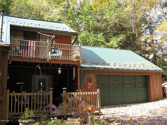 BEAUTIFUL level private corner lot is where you will find this contemporary home in the Hideout. Boasts a large 2 car garage & circular drive, four decks, one screened. With 3 large bedrooms and 2 full baths plus a large loft which can be used for sleeping, there's room for the gang! All this in a full amenity filled gated community w/4 Lakes, pools, tennis, indoor sports complex, 2 beaches, pub and restaurant, golf and more! Come and enjoy the Poconos now!
