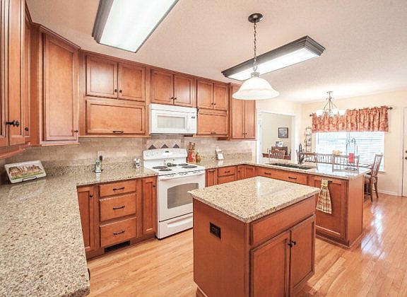 - Garden Tub, Pantry, Smoke Detector, Blinds, Kitchen Isle, Foyer, Bar, Wall Tile, Split Bedroom