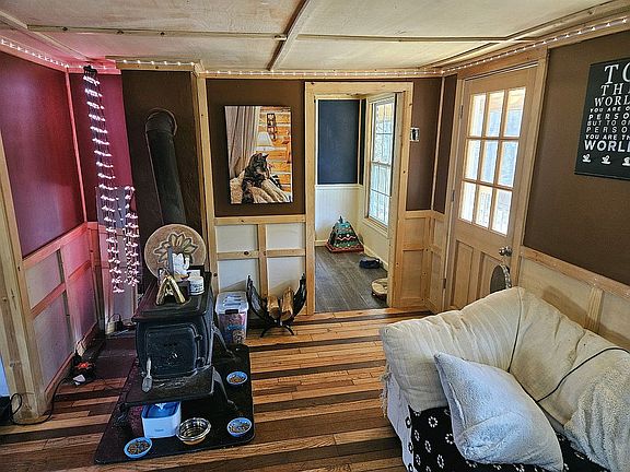 Recently completely renovated, studs down including roofing, siding, windows, electrical and plumbing. 2 story covered porch with a pergola covered deck with hottub. Heating/cooling by mini split, wood stove, baseboard heat and window unit air conditioners. Corner double lot