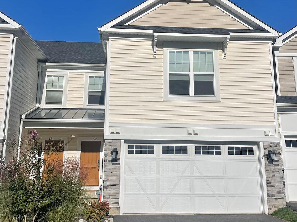 Welcome to 47 Hunters Lane, a lovely interior carriage home in the community of Brookefield, in the award winning Garnet Valley School District. This 3 bedroom, 2.5 bath home features an open concept floor plan. The bright, open layout features a welcoming foyer, a large living room/family room and open-concept dining room. The beautiful kitchen has white cabinets with crown molding, new subway tile backsplash, quartz countertops, stainless steel GE profile appliances, custom lighting, large island with seating, and a pantry with ample storage. Directly off the family room are sliding doors to a large patio overlooking open woods. Gleaming hardwood floors run throughout the 1st floor. The second level includes a large primary bedroom suite with a walk in closet and tray ceiling. The upgraded primary bathroom boasts quartz counters, double vanities, a large shower with frameless glass enclosure and separate toilet area. The 2nd floor also features two additional bedrooms with walk-in closets, and each bedroom connects to the Jack and Jill bathroom which has a double-sink vanity, ceramic tile floor and tub/shower combo. There is a convenient second floor laundry and a huge storage closet. The walk-out unfinished basement has a sliding door and full sized windows. This community is convenient to the shops at Granite Run, Brinton Lake shopping, the vibrant town of Media and is only about 20 min to the Phila. airport. The low association fees take care of all lawn, snow and common area maintenance.