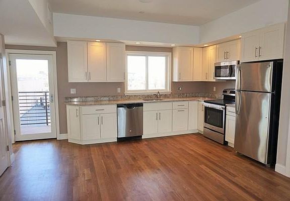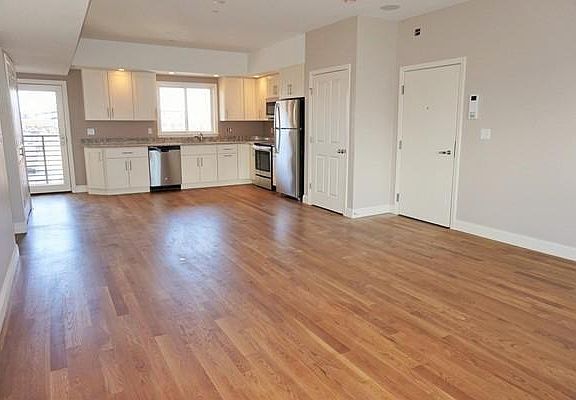 Stunning brand new construction building with elevator. Luxury unit features two bedrooms, two full baths, two decks, in-unit laundry, and garage parking. Bright, open-concept living/dining area is overlooked by the high-end kitchen, which has modern cabinetry, stainless steel appliances, and gorgeous granite counters. The kitchen provides access to a sunny deck overlooking Somerville. Smart layout features nice separation between living and sleeping areas. Master suite includes double closets, a private sun-soaked deck with city skyline views, and full bath. Second bedroom has adjacent full bath, plus laundry in the hallway. There is generous storage space throughout the unit, hardwood floors, central air conditioning, and central heat. This approximately 1,200 sf unit features maximum energy efficiency. One covered parking space is included in the rent, plus additional storage space and a bike room. Great location is about a 12 minute walk to Inman and Union Squares. Available 4/1.