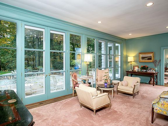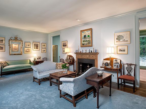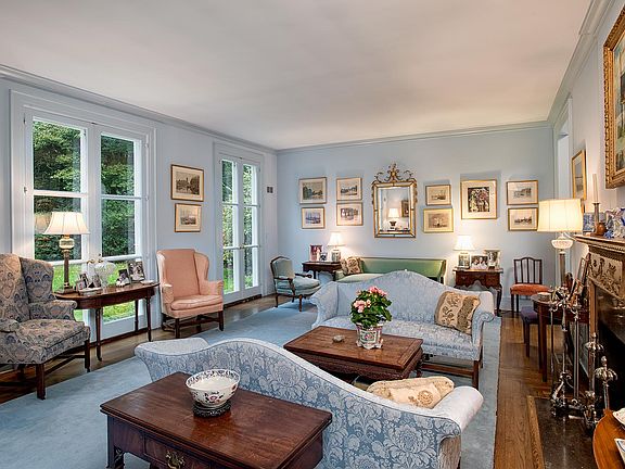 HIGH ON A LEVEL SOUTHFACING KNOLL ADJOINING 4.1 ACRE LAND TRUST WITH POND. SUPERB IMMENSLY ELEGANT, CUSTOM BUILT TO THE HIGHEST STANDARD ONE FLOOR RESIDENCE WITH WONDERFUL ROOM SCALE, LOVELY FLOORS AND HIGH CEILINGS IN TOP CONDITION CLOSE TO TOWN AND SCHOOLS ON A QUIET LANE WITH EASY ACCESS EVERYWHERE. LIVING ROOM WITH MANTEL SAID TO BE GEORGE III. PARQUET FLOOR IN CENTER HALL WITH FABULOUS 18TH CENTURY HAND PAINTED WALL COVERINGS. CABANA ADJOINS LOVELY POOL WITH REAL PRIVACY.