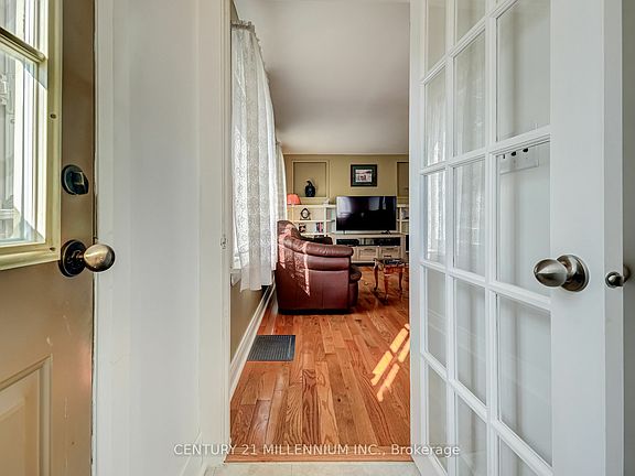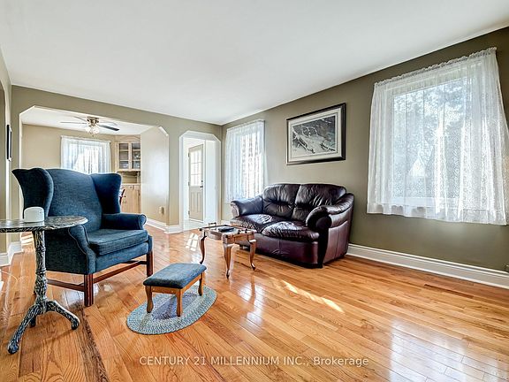 Beautiful 1.5 Storey, fully detached situated in Downtown Core on a deep 150 ft lot. Meticulously maintained inside and out including neutral tone vinyl cladding, vinyl windows, roof shingles, upgraded furnace/air conditioning unit, electrical panel and vinyl tool shed. Featuring a spacious open concept living and dining room combination with upgraded hardwood flooring, built-in open shelves and a built-in corner china cabinet. Sun Filled eat-in kitchen with ample white cabinets, neutral floor, window view over sink and a side door walk-out. Main Floor Primary bedroom with upgraded hardwood flooring, sliding door walk-out to refinished wood deck with railing.Remodeled 4 piece bath finished with white fixtures including a pedestal sink, soaker tub, white ceramic tiled shower enclosure, completely finished loft with second bedroom and computer nook/home office with laminate floors, built-in closets and attic storage space